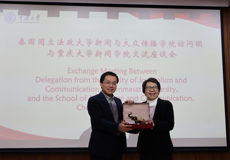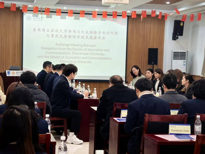 Adchara Panthanuwong感谢重庆大学新闻学院的热情接待,介绍了泰国国立法政大学新闻与大众传播学院的基本情况,并表示对加强双方合作的期待。