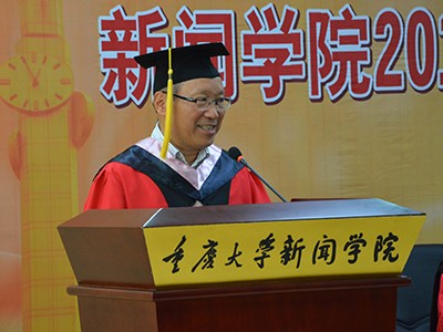首先,董天策院长对全体毕业生顺利完成学业表示祝贺,董院长总结了近年新闻学院所做出的努力和取得的成绩,分享了他对人生的体会。董院长认为,重庆大学的培养目标是行业精英和领袖,虽然新闻学院也通过努力获得了一定的成绩,但距离最终的目标还是有差距的。现在学院提高毕业的难度,这种改革借用股市的术语便叫做“触底反弹”,希望通过改革,让人才质量恢复到正常标准。“研究型大学的目的是生产知识、培养人才,而我认为最好的社会服务就是培养人才,最好的文化传承就是培养优秀毕业生。”最后,董院长祝大家百尺竿头更进一步,拥有幸福的人生。