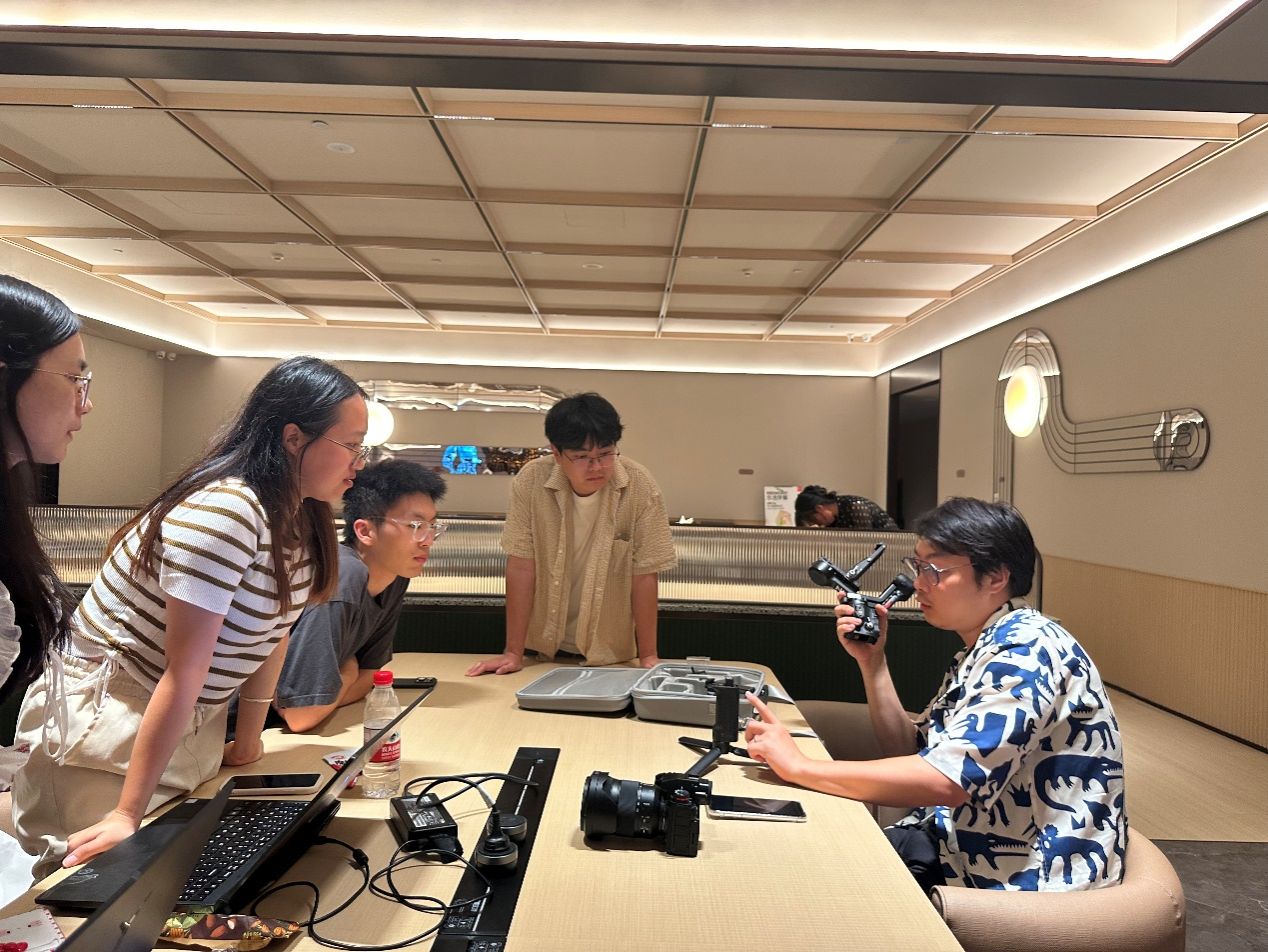 为保障此次校友采访的质量与深度,三位指导老师组织了多轮采访策划会与拍摄技术指导会,指导同学们反复打磨采访提纲,细致调试摄像机、录音设备与灯光布置,确保每一场访谈达到专业标准。在实际采访过程中,现场教学与采访实践融为一体,老师们实时指导采访与拍摄技巧,真正实现了“在实践中学、在过程中悟”。尽管行程紧凑,每日辗转于北京多个城区,团队成员始终精神饱满、配合默契,高效而圆满地完成了采访任务,以实际行动诠释了“勤学业、耐劳苦”的重大校训。